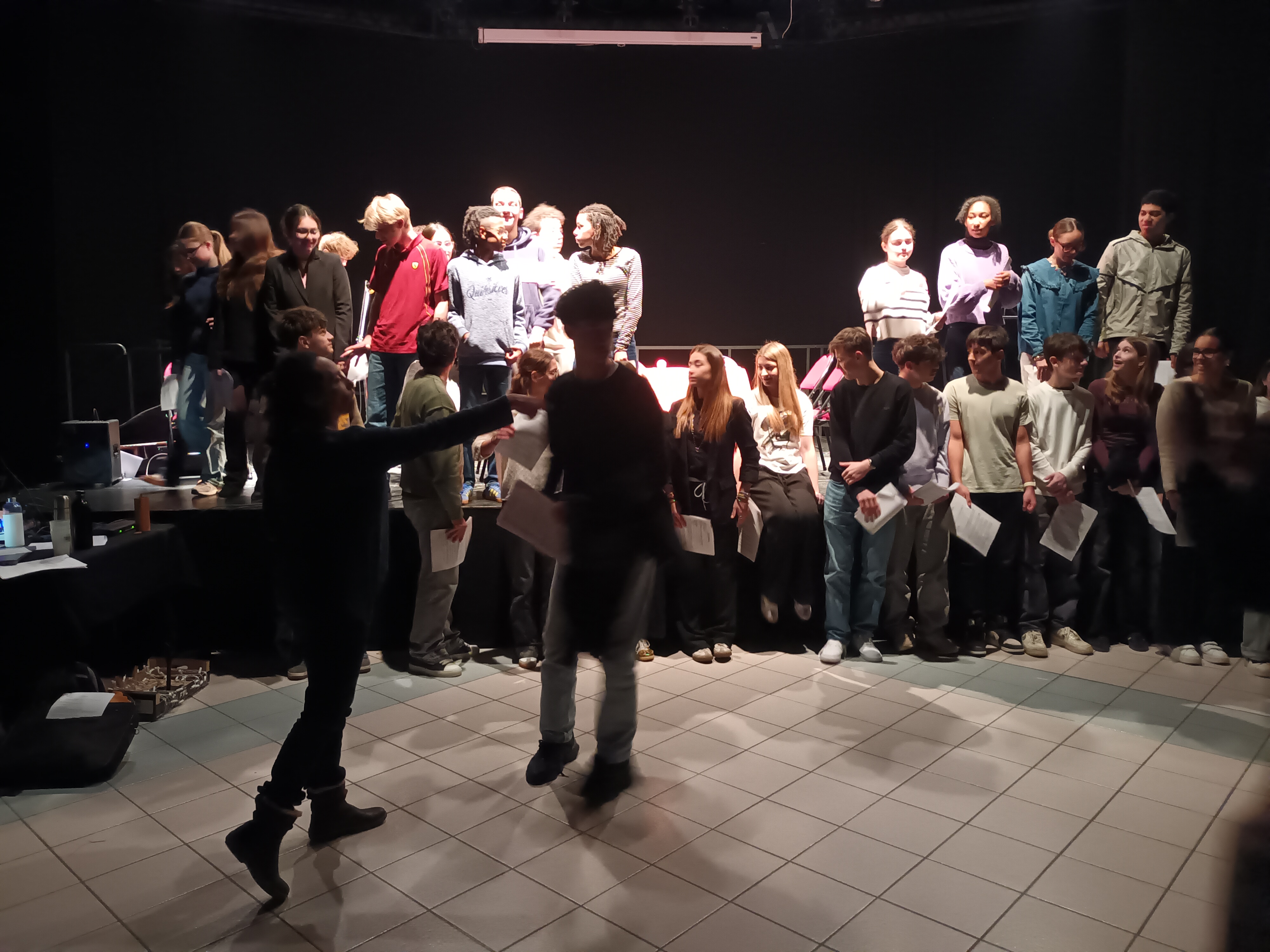Merci à Radio R’d’Autan et Claire K.S., qui a élaboré le montage de réflexions « Off » sur le thème « masculinités » d’après les interviews et les micro-trottoir réalisé par les élèves, merci aux techniciens bénévoles de la radio R d’Autan, Renaud et Thomas, qui ont assuré à la technique la lumière et le son, à Clément à la guitare.